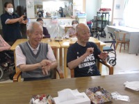 こんにちはデイサービスです。本日は月に一度の音楽レクを行いました。音楽レクと言っても担当の職員によって行う内容がカラオケだったり、イントロクイズだったり音楽体操だったりとさまさまですが、本日は童謡「ウサギとカメ」や「浦島太郎」の曲に合わせてイスに座ったまま行えるリズム体操やこの時期らしい「でんでん虫」の曲に」合わせて「ぐーちょきぱー」と言いながら手を使った脳トレ体操も行いました。みなさま慣れない動きに戸惑う様子も見られましたが、何度か繰り返すと「わー楽しいね♪ これなら家でもできるよ(^^♪」と楽しそうに取り組む方や「これは脳トレになるから毎日やってみるよ!」と仰る方もいました。今月最後のレクレーションもみなさまに大満足していただけました\(^_^)/