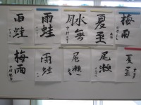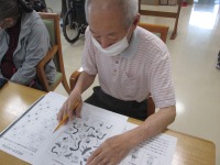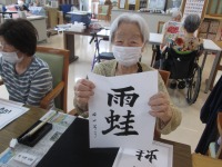 こんにちはデイサービスです。今日のレクは書道を行いました。この時期らしい「紫陽花」「水無月」「雨蛙」「梅雨」など季節を感じさせるお題に取り組んでいただきました。今日の利用者様は書道がお得意な方が多かった為、筆を手に取るとスラスラと書いていらっしゃいました。「今日はなんだか調子悪いな」と言いつつも10枚以上書かれていた方もいらっしゃいました(^^♪ お隣の方と書いた作品を楽しそうに見せっこしてる様子も見られワイワイとにぎやかな一時間でした(^^♪
