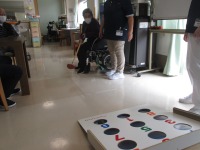 こんにちはデイサービスです。今日は大好評のパターゴルフを行いました。1から9まで数字が書いてある穴の開いた板に向かってパターを使ってボールを投げていただき数字の合計点を競っていただきます。今日の利用者様はゴルフ経験者が多く、投げるフォームもとても本格的で高得点を出されていました。なかには「やったことないからできないよー」と仰る方もいましたが投げてみると「ゴルフって楽しいいね(^^♪ もっと投げたい!」と楽しそうな表情が見られました。最後に職員が「もう一度チャレンジしたい人いますか?」と聞くと何人かの方がリベンジされ大興奮のご様子でした。毎度の事ですがパターゴルフは本当に盛り上がります♪ また次回が楽しみです(*^^)v