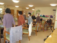 こんにちはデイサービスです。本日は機能訓練士の先生によるリハビリ体操を行いました。座ったまま行えて無理のないゆったりとした体操なので利用者様にも大人気です。本日は主に下肢をメインにした先生曰く「足活」の体操を行いました。タオルを床に敷いて足の指で巻き付けるようにする体操や股関節を回す体操、ふくらはぎを伸ばす体操など足を強化する体操を行いました。みなさまとても熱心に参加されて最後には「あー楽しかった♪ 家でもやってみよう」「疲れたけどまたやってね」と大満足のご様子でした(^^♪