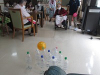 こんにちはデイサービスです。今日のレクは大好評のボーリングを行いました。ここでは空のペットボトルに重しのビー玉を入れたものをボーリングのピンにして行います。みなさまには2回ずつ投げていただきその合計点を競っていただきます。「昔よくやったからボーリングは得意なんだよー」と張り切って投げる方もいれば「やったことないから出来ないよ」と苦戦される方もいらっしゃいましたが、みなさま楽しそうに参加されました。なかには「リベンジしたいからもう一回投げさせてー」と再チャレンジされる方もいらっしゃいました(^^♪ 大盛り上がりの一時間となり、その後のおやつでもボーリングの話題でもちきりでした。