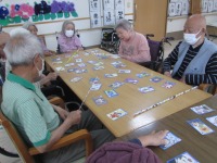 こんにちは、デイサービスです。今日のカードゲームレクはいろはがるたと都道府県名カードゲームの2種類を用意しました(^^♪いろはがるたは何度もやっているので馴染み深く、今回も大盛り上がりでした♪都道府県名カードゲームは一文字づつ書かれているカードを組み合わせて都道府県名を完成させるといったゲームですが、もうひとひねりしてその都道府県名の特色や名産品も全員で考えて答えてもらいました。「宮城県といえば牛タンにずんだもちだね」「長崎といえば私が好きなカステラが有名だよね」など、会話も弾んでいました(*^-^*)