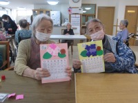 こんにちはデイサービスです。今日は6月のカレンダー制作を行いました。6月ということで紫陽花(アジサイ)とカタツムリをテーマに作りました。皆様には紫陽花の花を乗せる台座を折り紙で折っていただき色画用紙に紫陽花の葉っぱと台座を貼り、あらかじめ作ってあった色とりどりの紫陽花の花とカタツムリを貼っていただきました。カタツムリの顔は皆様に可愛らしく書いていただき「6月」の文字と日付をバランス良く貼っていただいて完成です。「きれいに仕上がったから早く飾りたいな」と「可愛く出来たから孫に見せたいな」と皆様嬉しそうに仰っていました。今日のカレンダー制作も大成功でした\(^_^)/