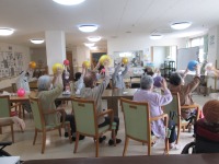 こんにちはデイサービスです。本日は毎月恒例の機能訓練士によるリハビリ体操を行いました。イスに座ったまま出来るので利用者様にも大人気の体操です(^^♪ まず初めに両手を挙げて左右に曲げる体操、ゆっくりと呼吸を整えながら行います。背筋を伸ばしながら行いみなさま「あー、気持ちいい♪」「これなら家でもできるね」と笑顔で取り組まれていました。他にもボール体操ということで手足をしっかり使い全身の筋肉をほぐす体操も行いました。機能訓練士のY先生の体操はとても効果があると利用者様にも人気です。また来月も今から楽しみです(^^♪