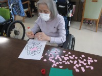 こんにちは、デイサービスです。今日はバラの下絵を使ってちぎり絵に取り組んでいただきました。先週バラ園見学に行ったばかりなので、バラの記憶も鮮明でまずは何色にするか決めてもらいました。赤、黄、紫などが人気でした。次に折り紙を手でちぎってもらうのですが、折り紙を最初にすべてちぎってしまう方、ちぎってそのつど貼り付ける方などそれぞれお好きなやり方で進めてもらいました。1時間集中したので素敵な作品がたくさん完成しました(^^♪