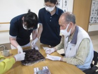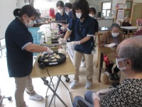 こんにちは、デイサービスです。今日の料理教室レクはやわらか焼き団子を作りました。白玉粉と豆腐を混ぜた生地に丸めたあんこを包んでホットプレートで焼くだけです(^^♪あんこを丸める作業はみなさん大得意です。生地がとてもやわらかいのであんこを包む作業に苦戦しましたが、ラップを使うなど工夫しました。ホットプレートで焼いているときはデイルームがあんこが焼けるいい香りでいっぱいになり皆さんの期待値も高まっていました(笑)「想像してたとおり、やわらかくて美味しいよ。」「初めて食べるけどちょうどいい甘さでいいね。」などの声も聞かれ、大好評のレクとなりました(*^-^*)