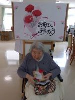 こんにちは、デイサービスです。今日は介護川柳レクを行いました。いくつかご紹介したいと思います。「九十を迎えて友はみな周忌済み」「お米の値上げ朝めし一杯減らされる」「またトイレです年とってきたからしまりがわるい」しみじみとする作品からクスッと笑ってしまう作品までそろってました(*^-^*)レク時間後半はお誕生日会でした。職員からは色紙のプレゼントがあり、全員でハッピーバースデーソングを歌ってお祝いしました♪おやつはもちろんケーキです。S様おめでとうございます(^^♪