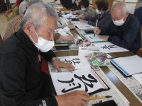 こんにちは、デイサービスです。今日は「五月」「牡丹」「輝く笑顔」などのお手本を使って書道に取り組んでもらいました。敷島デイのご利用者様は書道経験者の方も多いのでいつものレクより気合が入ります(*^-^*)皆さん集中して、ご自分が納得できる作品に仕上がるまで何枚も何枚も書きあげてくださいました。「今日は調子が悪かったな」「書道なんて中学校ぶりだよ」などたくさんの感想を聞かせてもらいました。作品はデイルームの書道コーナーに飾らせてもらっています(^^♪