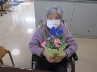 こんにちはデイサービスです。今日のレクは久々のフラワーアレンジメントでした。本日のお花はスプレーカーネーション(ピンク)・かすみ草(白)・デルフィニウム(紫)と春らしい3種類のお花をご用意しました。初めての方も何人かいらっしゃいましたがとても手際良く可愛らしくアレンジされており個性あふれるお花が仕上がりました。最後にできたお花にラッピング用のリボンをして完成です(^^♪ 「きれいにできたー♪ 早く部屋に飾りたいなー」「昔生け花をやってたからこーゆーことは得意なんだよ」と嬉しそうに皆様取り組まれていらっしゃいました。その後のおやつでは仕上がったお花をご覧になりながら皆様嬉しそうに召し上がっていらっしゃいました。