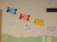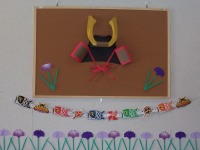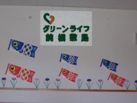 施設の中は、こいのぼりを飾りゴールデンウイーク終盤のこどもの日をお祝いしています。