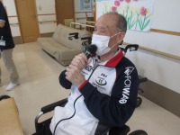 こんにちは、デイサービスです。今日の音楽レクはご利用者にお好きな曲のリクエストを出していただいてカラオケで歌いました(^^♪ 北国の春、銀座の恋の物語、旅の夜風などの歌謡曲から四季の歌、茶摘などの唱歌までと幅広くありました。今回もH様とS様はマイクを持って歌ってくださいました(*^-^*)懐かしい曲を聞いてしっかりと声も出せて楽しい時間だったと大好評でした♪