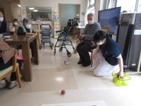 こんにちはデイサービスです。本日は大好評のパターゴルフを行いました。9か所穴が開いてる台に固めのボールを10回パターを使って投げていただき、その穴に書かれている数字の合計点を競っていただきました。本日の利用者様はゴルフやゲートボールの経験がある方が多く高得点を出されてる方がたくさんいらっしゃいました。「久しぶりにやったけど高得点を取れたー♪」「難しいけど楽しいねー♪」とみなさま楽しそうに笑顔で取り組んでいらっしゃいました。その後のおやつでもパターゴルフの話題でもちきりでした(^^♪