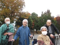 こんにちはデイサービスです。今日は毎年恒例の紅葉見学ドライブに行ってきました(^^♪ 敷島公園周辺~上毛大橋~産業道路(イチョウ並木)~前橋公園周辺(臨江閣)のコースでドライブし、敷島公園入口の紅葉スポットで記念写真を撮りました♪ 皆様「イチョウの葉っぱが黄金色に染まって本当きれいだねー」「紅葉見学なんて久々だから見れて嬉しいよ」などと嬉しいお言葉をいただきました(^^♪ 気分転換になったと大変喜ばれ笑顔がたくさん見られました♪ 紅葉見学はまた明日も続きます~(^^♪