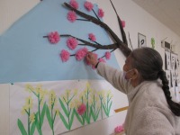外は冷たい雨が降っていますが(みぞれのように雨粒が大きいです)施設の中はタンポポやチューリップが咲き、桜が満開になりました!