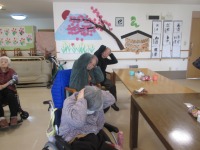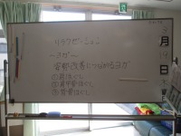 こんにちはデイサービスです。今日はリラクゼーションということで座ってできる姿勢改善につながるヨガを行いました。皆様は椅子に座ったままで肩を中心に肩ほぐし・肩甲骨ほぐし・背骨ほぐしを職員の動きを見ていただきながら取り組んでいただきました。リラックスしていただけるようゆったりとしたクラッシクをながしながら行いました。肩を回したり、両手を組んで横に思い切り伸びたり、背中を丸めておへそをのぞき込む動きをしたりと、深く呼吸をしていただきながら皆様のペースで楽しく行っていただきました。「肩が楽ちんになったよ」「楽しかったよ。またやって欲しいよ」と嬉しい言葉もいただきました。体を使った後は皆様美味しそうにおやつを召しあがっていらっしゃいました。