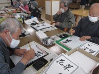 こんにちは、デイサービスです。今日の書道レクは「彼岸」「菜の花」「春光」「土筆」などのお手本を用意して取り組んでいただきました。敷島デイは書道経験者の方も多く、師範の先生もいらっしゃるので、的確なアドバイスをしてくれます。子どもの頃からつい最近まで書道をやっていたと教えてくださいました。皆さん、1時間集中して納得のいく作品が書けるまで頑張ってくださいました。完成作品はデイルームの書道コーナーに貼らせてもらっています(*^-^*)