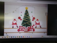 両脇の大きなサンタさんがとても楽しそうに仕上がりました。