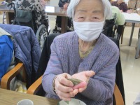 こんにちはデイサービスです。今日のレクはひな祭りと言うことで桜餅作りをしました。まず皆様には米粉、白玉粉、砂糖、水、食紅を混ぜてもらい桜餅の生地作りをしていただきました。少しの間生地を寝かせ、その間皆様には中に入れるあんこ玉を丸めていただきました。そして生地を薄く伸ばして小判型に焼き、中にあんこ玉を挟み桜の葉を巻いて完成です。ほのかな桜の香りがホール中に広がりとても美味しそうに仕上がりました。皆様とても手際が良く完璧な仕上がりになりました。デイホールに飾ってあるひな人形を眺めながら皆様で美味しくいただきました。