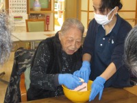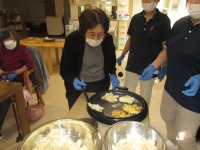 こんにちはデイサービスです。今日のレクは料理教室でさつまいものガレットを作りました。皆様にはさつまいもの皮を剝いてもらったり、スライサーを使ってスライスを手伝ってもらいました。「できないよ~」「難しいなあ~」と言いながら笑顔で参加して下さいました。皆様喜んで「美味しいよ、おかわり頂戴」!(^^)!「家でも作ってみよう!」おかわりをする方が沢山いました。大好評の料理レクでした(*^-^*)