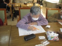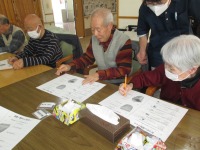 こんにちはデイサービスです。本日のレクは昭和回想法を行いました。みなさまには「懐かし昭和クイズ」と「回想~懐かしい物~」のプリントをお配りして各自取り組んでいただきました。幼少期に遊んだおもちゃやおやつの名前を問う問題ではみなさま「小豆が入った布袋と言えばお手玉でしょ(^^♪」」「棒状状の黒糖を使ったお菓子と言えば麩菓子だねー」とすぐにお答えになり、懐かしい道具を問う問題でも「おひつ」や「洗濯機」の写真を見て「本当に懐かしいわー、昔はどこのうちにもあったんだよ!」と仰り、使い方などを嬉しそうに教えてくださいました(^^♪ 昔の事を思い出すことは脳の活性化になり認知症予防にもつながります。またみなさまがとても笑顔になるので引き続き続けていきたいと思いまーす(^▽^)/