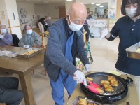 こんにちはデイサービスです。今日は料理教室ということで皆様の大好きなフレンチトーストを作りました。食パンを四ツ切りにして卵と牛乳を混ぜた液に浸してたっぷりのバターで両面をこんがりと焼き粉砂糖とシロップをかけて出来上がりです。皆様慣れた手つきで食パンを切ったり、卵を割ったり、焼けたフレンチトーストをひっくり返すなどをそれぞれ分担してサクサクとやって下とても美味しそうに出来上がりました。「甘くて美味しいね」「おかわり欲しいな」と大好評でみなさん笑顔で召し上がっていらっしゃいました。また次回の料理教室が今から楽しみです。