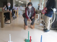こんにちは、デイサービスです。今日のゲームレクは輪投げでした。敷島デイのご利用者様には輪投げクラブに所属していて、市内の輪投げ大会でチーム優勝したことがある方がいらっしゃいます(*^-^*)皆さん集中して高得点目指して取り組んでいただき、ご自分の順番でないときもアドバイスをしてくださったりと楽しんでくださいました。最後直径20センチほどの輪を投げてもらいますが、最後に投げていただくのはフラフープです(^^♪ どの方もフラフープを投げるときは笑いも起こって楽しい時間が過ごせました。