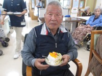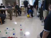 こんにちは、デイサービスです。今日はボウリングゲームレクを行いました。ビー玉が入ったペットボトルがピンになっており、ゴム製のボールを投げてもらいました。ボウリング経験者の方もたくさんいらっしゃるので、高得点目指して大盛り上がりです(*^-^*)楽しい時間が過ごせました。また、12月に誕生日を迎えたご利用者様のお誕生日会を行いました。職員からは写真付き誕生日カードをプレゼントをして、ご利用者様全員でハッピーバースデーソングを歌って、厨房の方の手作り誕生日ケーキを召し上がっていただいてお祝いしました(^^♪