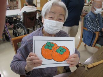 こんにちは、デイサービスです。本日は久しぶりのちぎり絵で「柿」を仕上げました。同じような色を使用してもちぎり方や折り紙の貼り方によってそれぞれとても個性のある柿に仕上がりました。折り紙をちぎったりはったりする作業はとても指先を使うので職員と一緒に仕上げてくださった方もいました。ちぎり絵をしながら職員との会話に花が咲いており穏やかですが賑やかな時間を過ごせました。「たまにはこんな時間もいいね」「たくさん話せてよかったよ」とお言葉を頂きました。(*^^*)