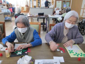 こんにちは。デイサービスです。本日は12月のカレンダーを制作でした。折り紙で作った葉っぱを8枚で1つのポインセチアなるように見立てました。真ん中には黄色のシールを貼って完成です。台紙は黒と黄色を用意しましたがどちらも素敵な作品になりました。「花が咲いてきれいだね」「黒は落ち着いた雰囲気になるよ」「12月らしいのができてよかった」とのお声がありよかったです。(^^♪