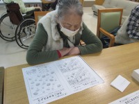 こんにちは、デイサービスです。今日は4種類の脳トレを行いました。間違い探し、数かぞえ、ことわざ慣用句、計算問題と盛りだくさんでした。敷島デイの皆さんはとても仲が良いのでわからない問題はお隣同士で相談して考えてくださいます(*^-^*)「ここわかった?」「私もわからないよ」といった会話が聞こえてきます(^^♪今日も1時間しっかりと頭を使ったので15時のお茶とカボチャババロアのおやつがとてもおいしかったと好評でした♪