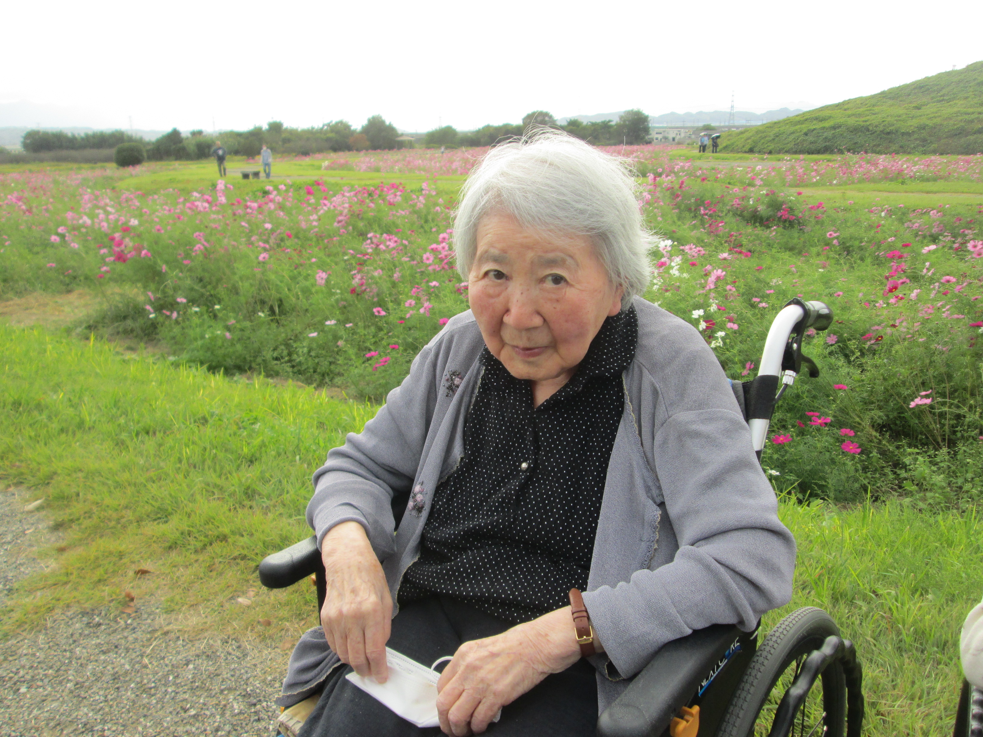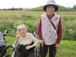 こんにちは、デイサービスです。昨日から順番に、「はにわの里」に「コスモス見学」に外出しております。本日も良い日で寒くもなく無事にコスモス見学ができました!コスモスは半分以上咲いておりとてもきれいでした。利用者様方も「とっても綺麗だったよ」「気候も良くてよかったですよ」「行ってきてよかった」と素敵な笑顔をたくさん見せて下さいました。(*^-^*)