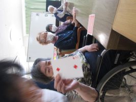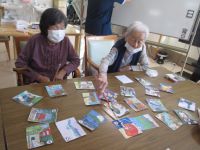 こんにちは、デイサービスです。本日のレクリエーションはカードゲームということで、全員で「上毛かるた」と「ババ抜き」を行いました。上毛カルタは皆様ベテランの方ばかりなので大きな声で「はい!」と言って札を取ってくださいました。職員が札を読み始めると大体の方がその後につづいて読んでくださり皆様いつまでも暗記されていてとてもすごいなあと感心してしまいました。ババ抜きは時間内に終わらなかったのですが、ババがたくさん移動したので「ハラハラだね」と楽しんでいる様子でした。(*^-^*)