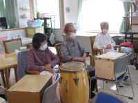 こんにちは、デイサービスです。本日のお楽しみレクでは「ボンゴ」や「カホン」、「ジャンベ」という打楽器を叩いて楽しむレクを実施しました。みんなで好きなリズムを叩いたり、職員をマネして同じリズムを叩いたりして楽しみました。音楽に合わせてリズムを叩くのは難しいですがとても楽しい時間でした。「もっとやりたい」「私ははやく叩けるよ」などいろいろな声も聞こえました。みなさま楽しそうでよかったです。(*^-^*)