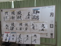 皆さん納得のいく作品に仕上がるまで何枚も書き上げてくださいます。自信作を提出してもらい、ホワイトボードに貼りました。