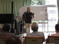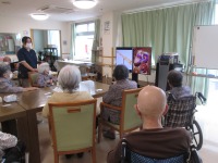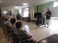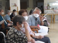 本日は敬老の日ということで敬老会を行いました。ボランティアの高山様が尺八演奏に来て下さり、「夏の思い出」石井好子さん、「上を向いて歩こう」坂本九さん、「赤城の子守歌」東海林太郎さんなどの14曲を披露してくださいました。途中で沖縄曲の三線(さんしん)弾き語りもして下さり、とても素敵な音色と歌声でご利用者の皆様楽しんでいました(^^♪