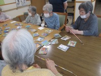 今日はカードゲームを行いました。上毛カルタを行い、いろはカルタにも挑戦しました(*^-^*) ご利用者の皆様すばやくカードをとられ職員も驚かされます!いろはカルタの意味も説明しながら進めていましたが、職員が意味を説明する前に答えて下さるご利用者様もいらっしゃり盛り上がっていました。