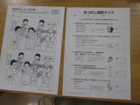 こんにちは、デイサービスです。本日は昭和回想法のプリントで、昭和の今では懐かしい時事クイズや、流行歌クイズ、昭和の出来事間違い探しなどをやりました。問題を解くたびに「懐かしいね!」「こんなこともやってたな」「忘れちゃってたよ」と皆様がそれぞれの思い出をたくさん話してくださいました。(^^♪ 職員の知らない昭和の出来事をたくさん知られてとてもよかったです。