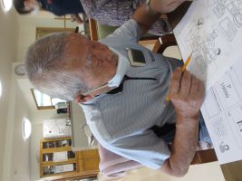 こんにちは、デイサービスです。本日の脳トレは難読漢字と間違い探しを行いました。難読漢字は「無花果(イチジク)」「鳳梨(パイナップル)」「桜桃(さくらんぼ)」「甘蕉(バナナ)」、「鰊(にしん)」「柳葉魚(シシャモ)」などの漢字の読み方クイズを出題しました。職員の予想よりも皆様がスラスラ読めていたので驚きました。間違い探しはお得意なのでこちらもなんなくこなしていました。(^^♪