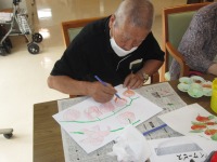 こんにちは、デイサービスです。本日は脳トレを行いました。前半はホワイトボードを使用し難読漢字に挑戦していただきました。「水雲(モズク)」「鹿尾菜(ヒジキ)」「尾田(おでん」「鰊(ニシン)」などふだん馴染みのないものばかりで手こずっている様子でした(;^_^)