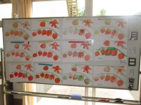 皆様きれいなオレンジ色や緑色などを使って上手に仕上げてくださっていました。出来上がった水彩画を前に飾ると「それは誰が塗ったの?いつも上手ですね!」「きれいな色で塗れてるね」と話が盛り上がっていました♪