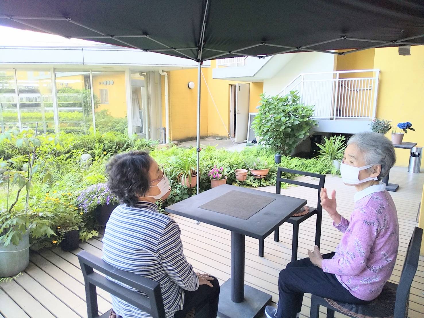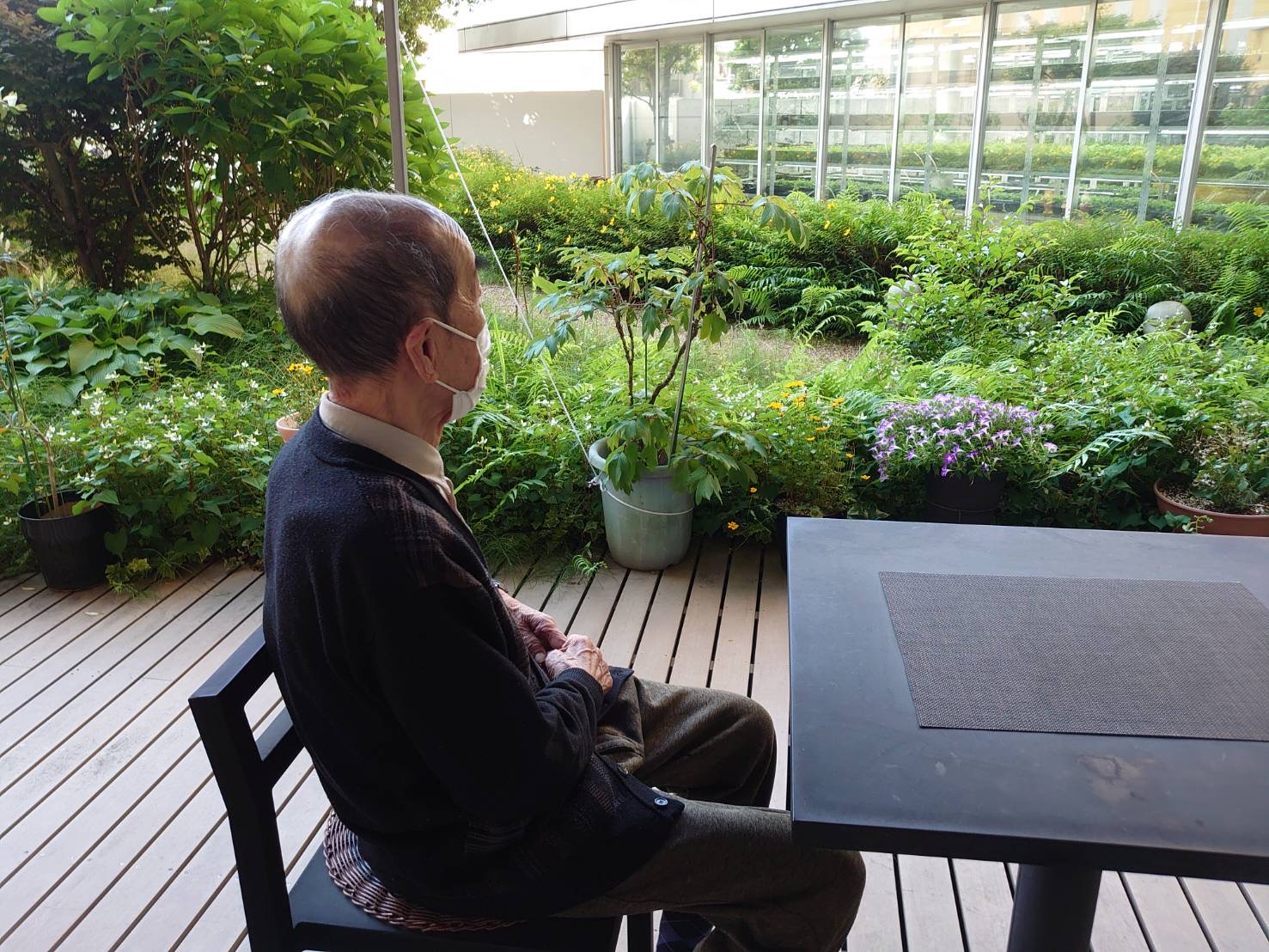 お昼は中庭においでで、穏やかな時間をすごされておりました。
