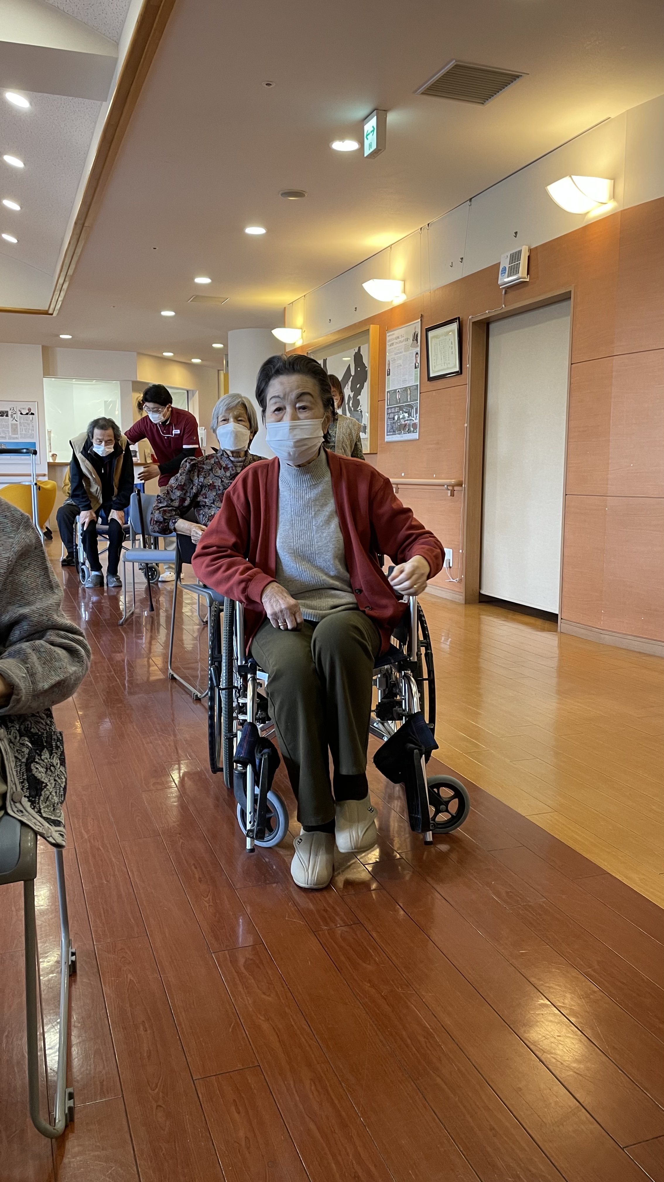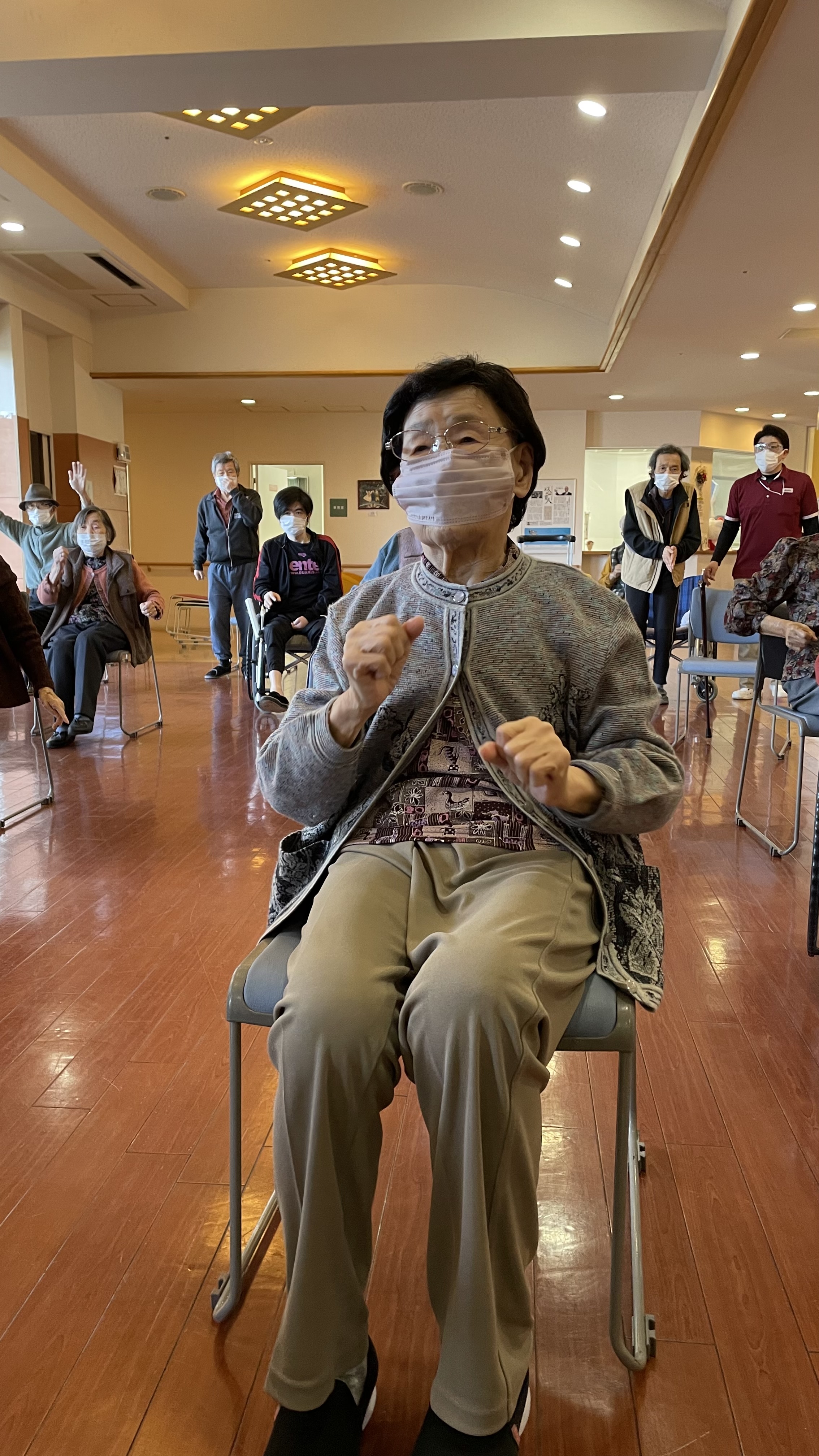 音楽が鳴ると、立って体操されていましたよ。