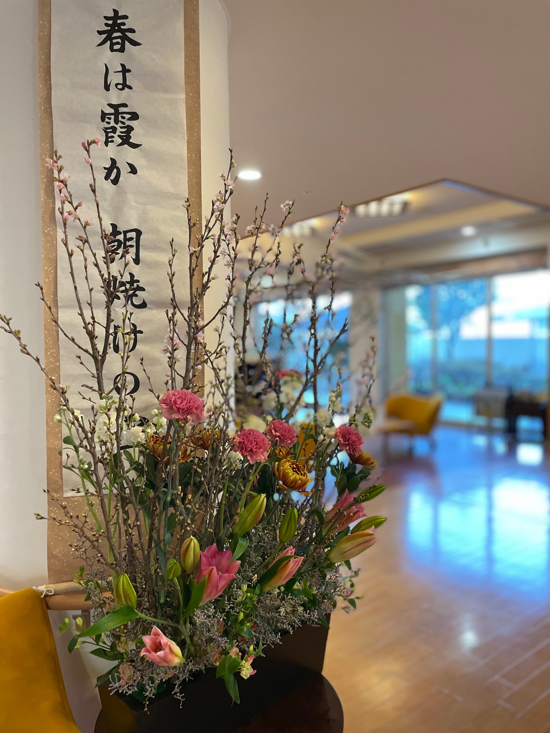 施設内Tさんが活けたお花で