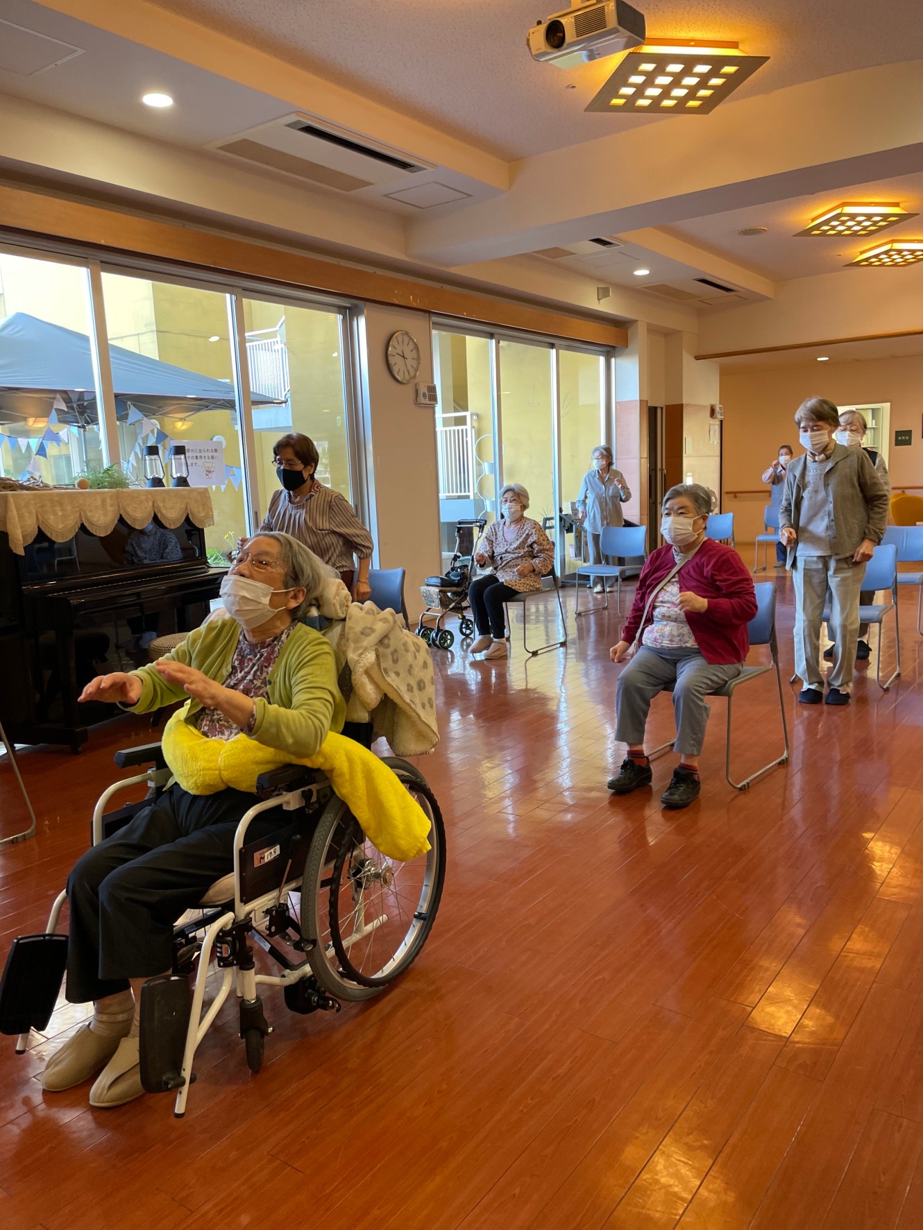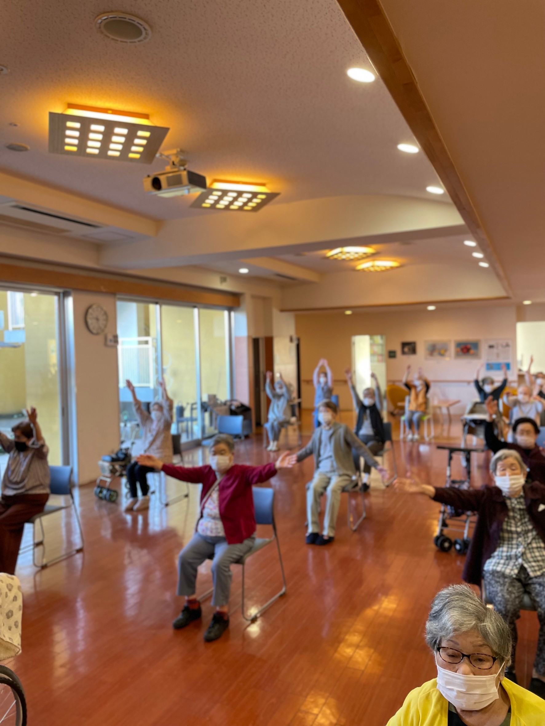 施設内平和に体操行いました