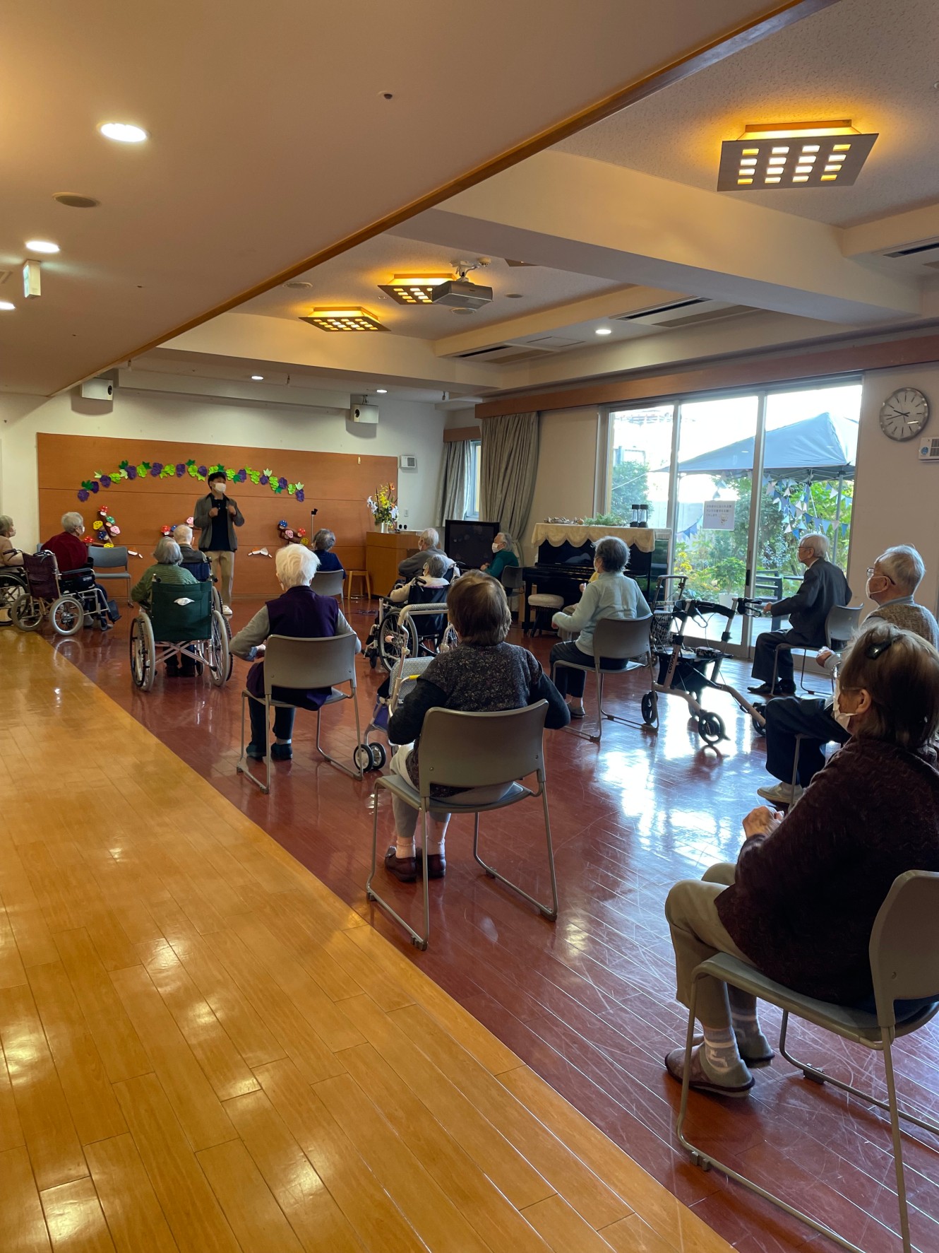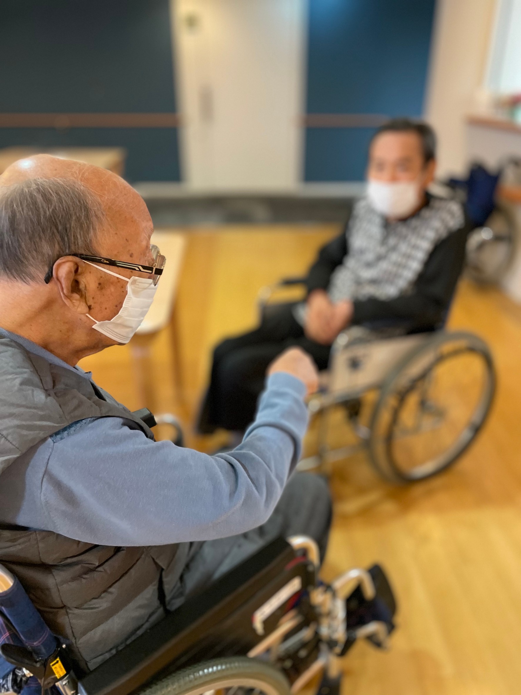 今日の一コマはリハビリの合間に中庭でのんびり休憩中のI様です‼︎‼︎