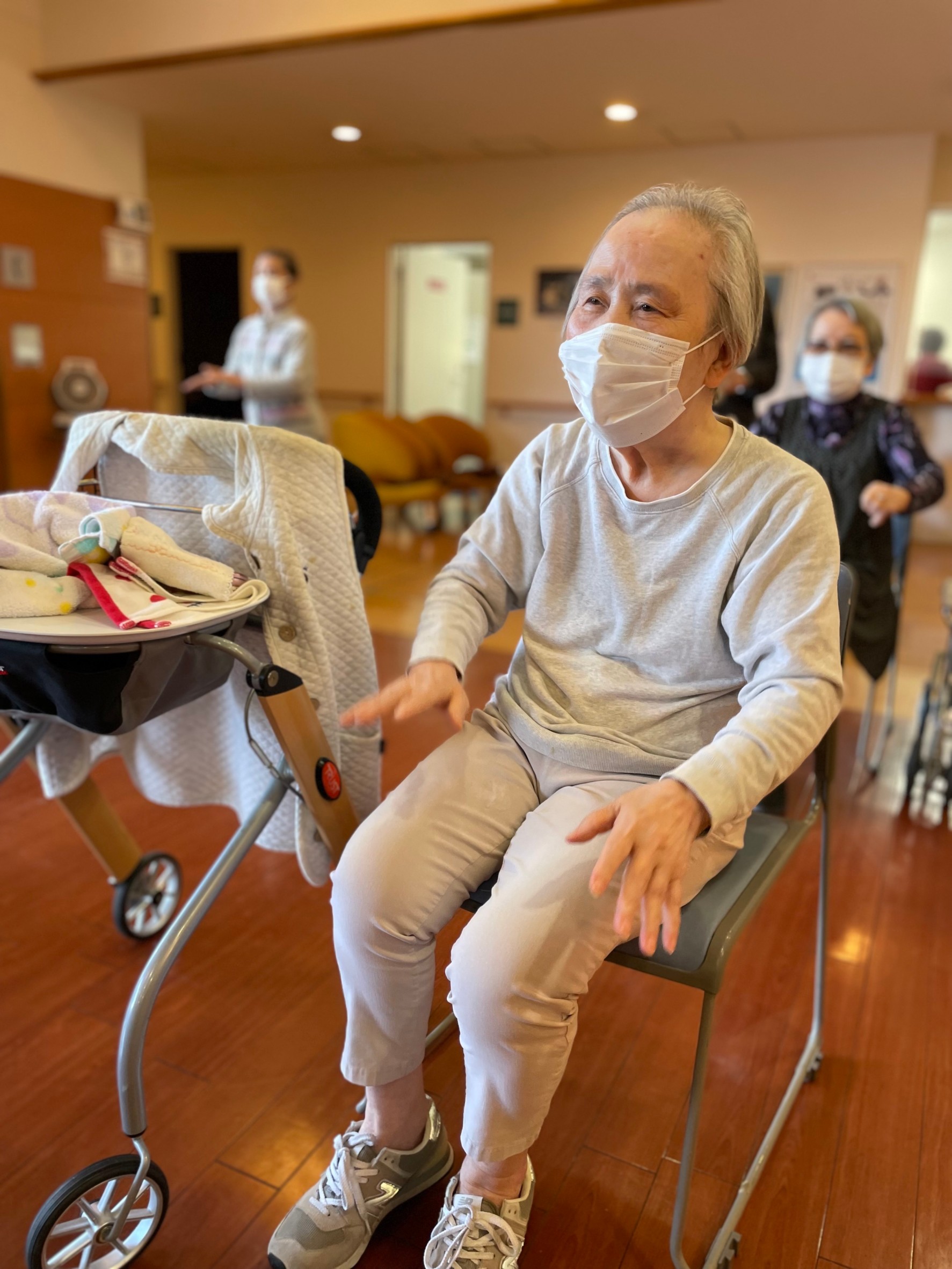 ゲームをしたんですが成功して喜んでいる瞬間ですが、リハビリの時より手が上がっている気がします笑