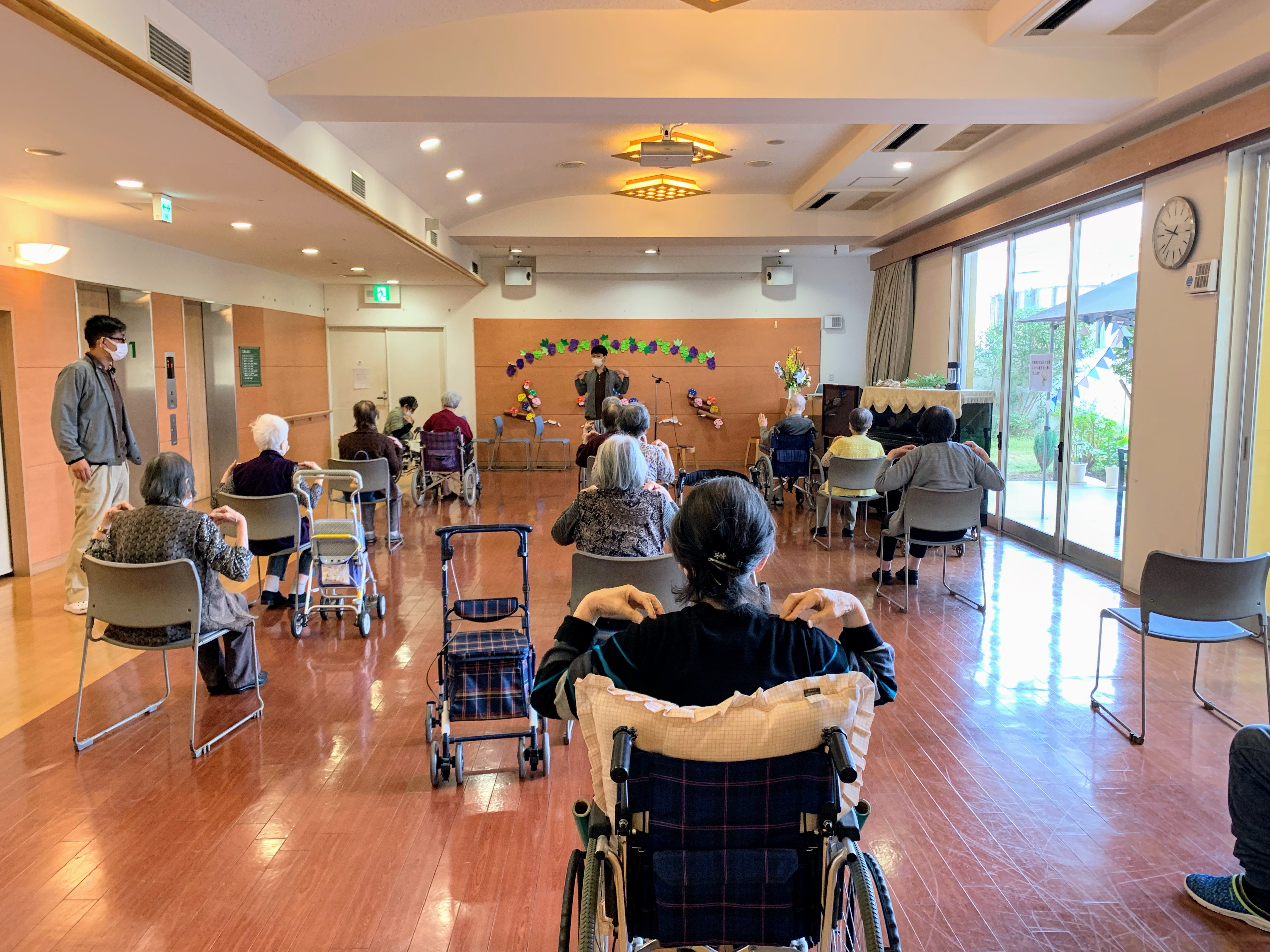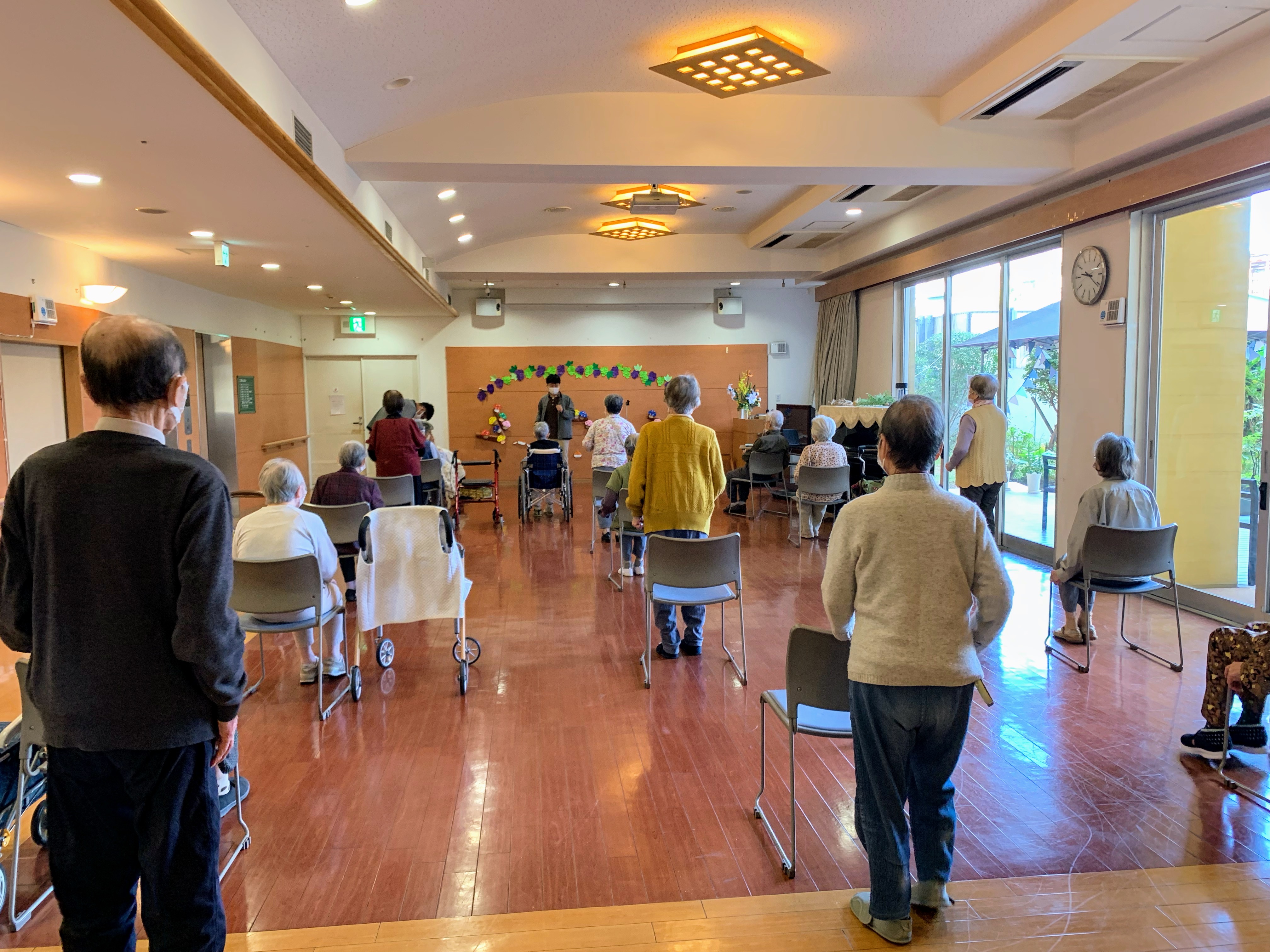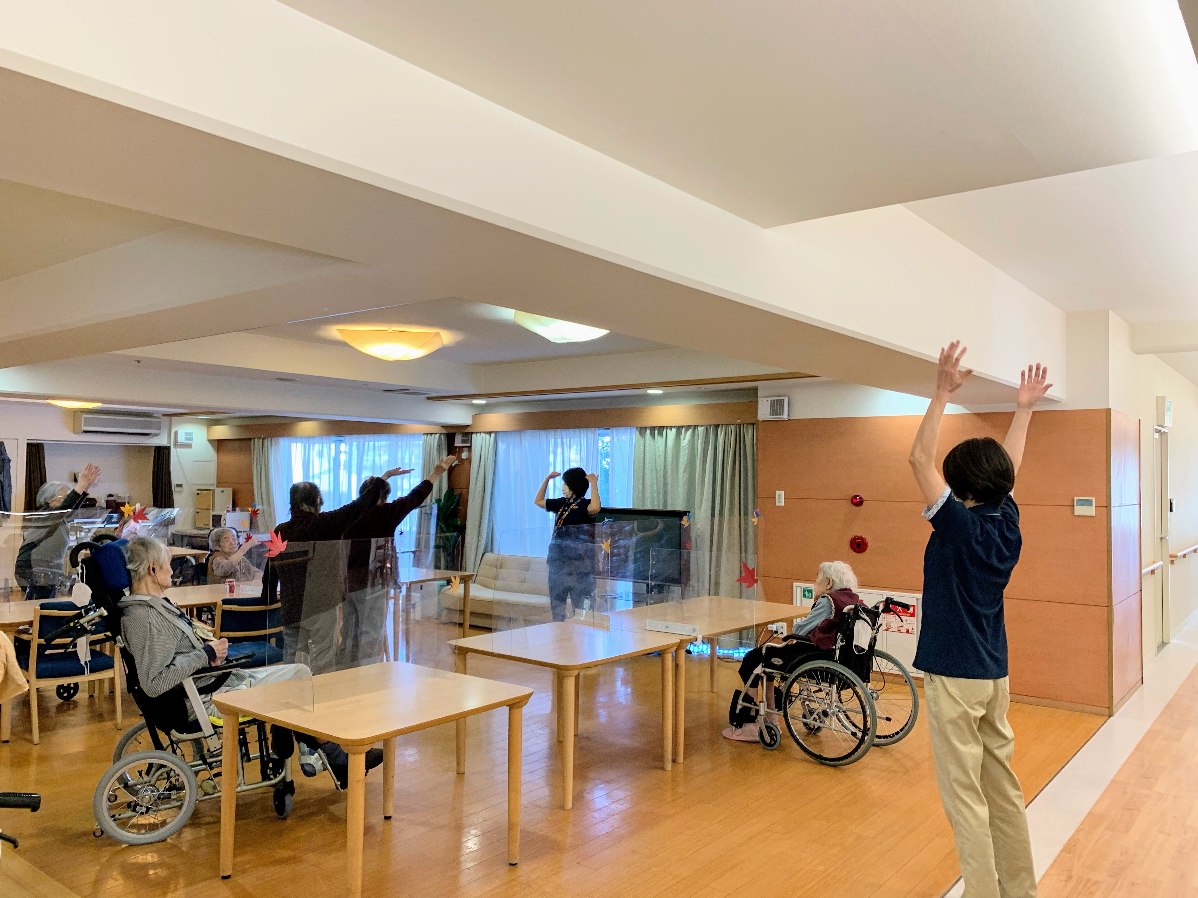 ホールや廊下や居室で