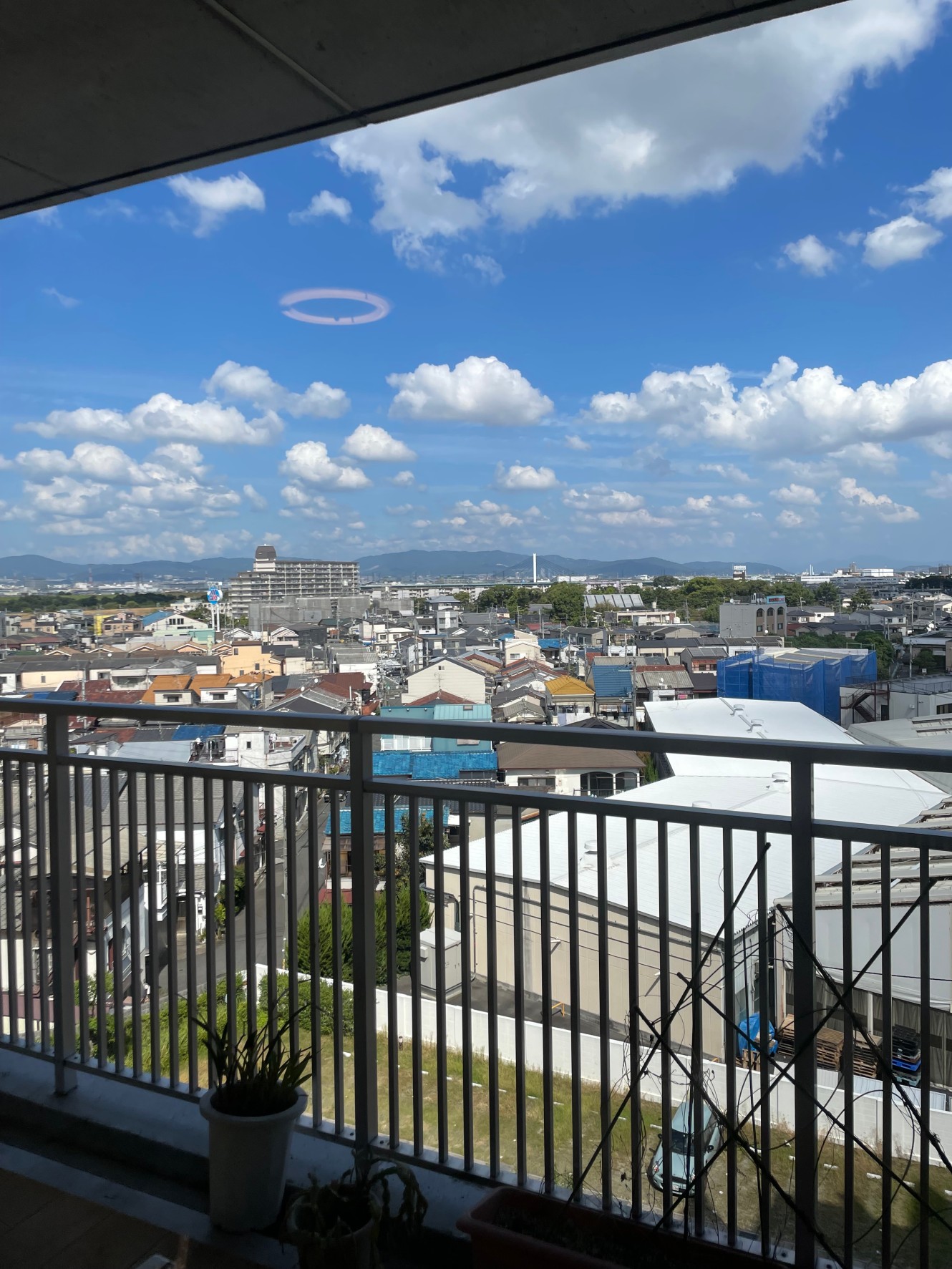 生駒山と青空、白い雲がきれいに