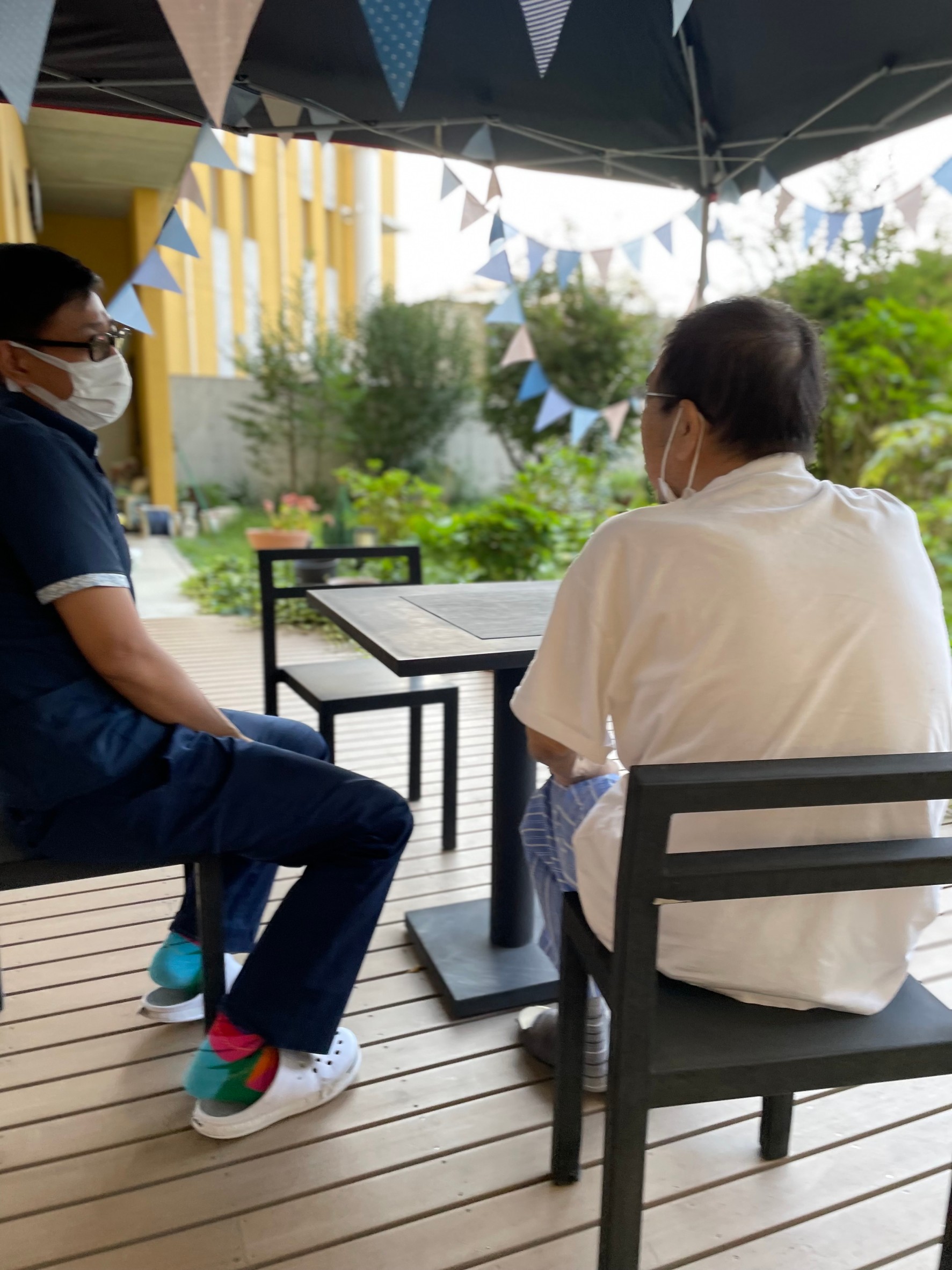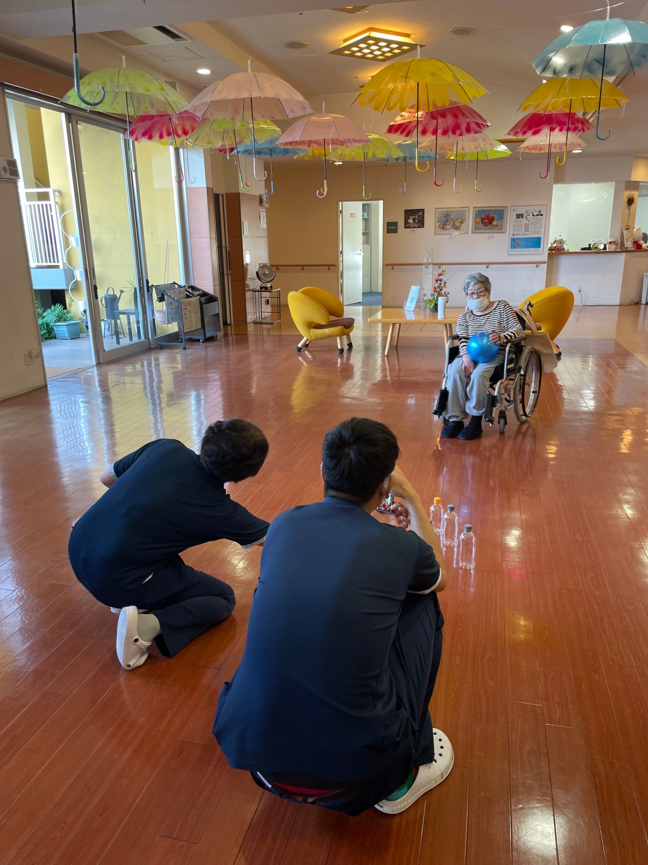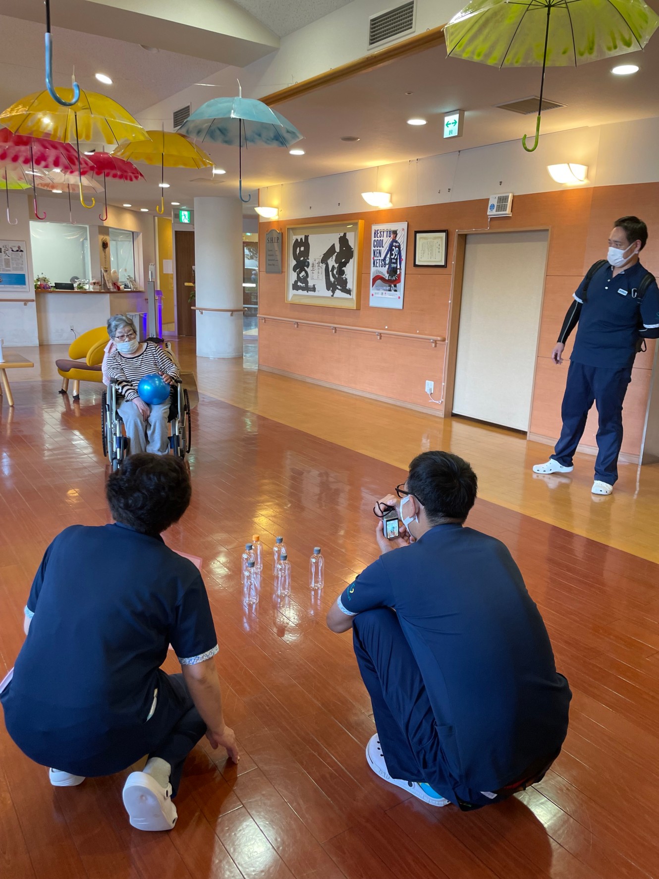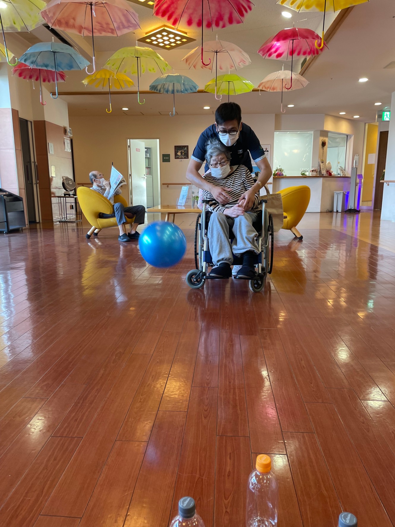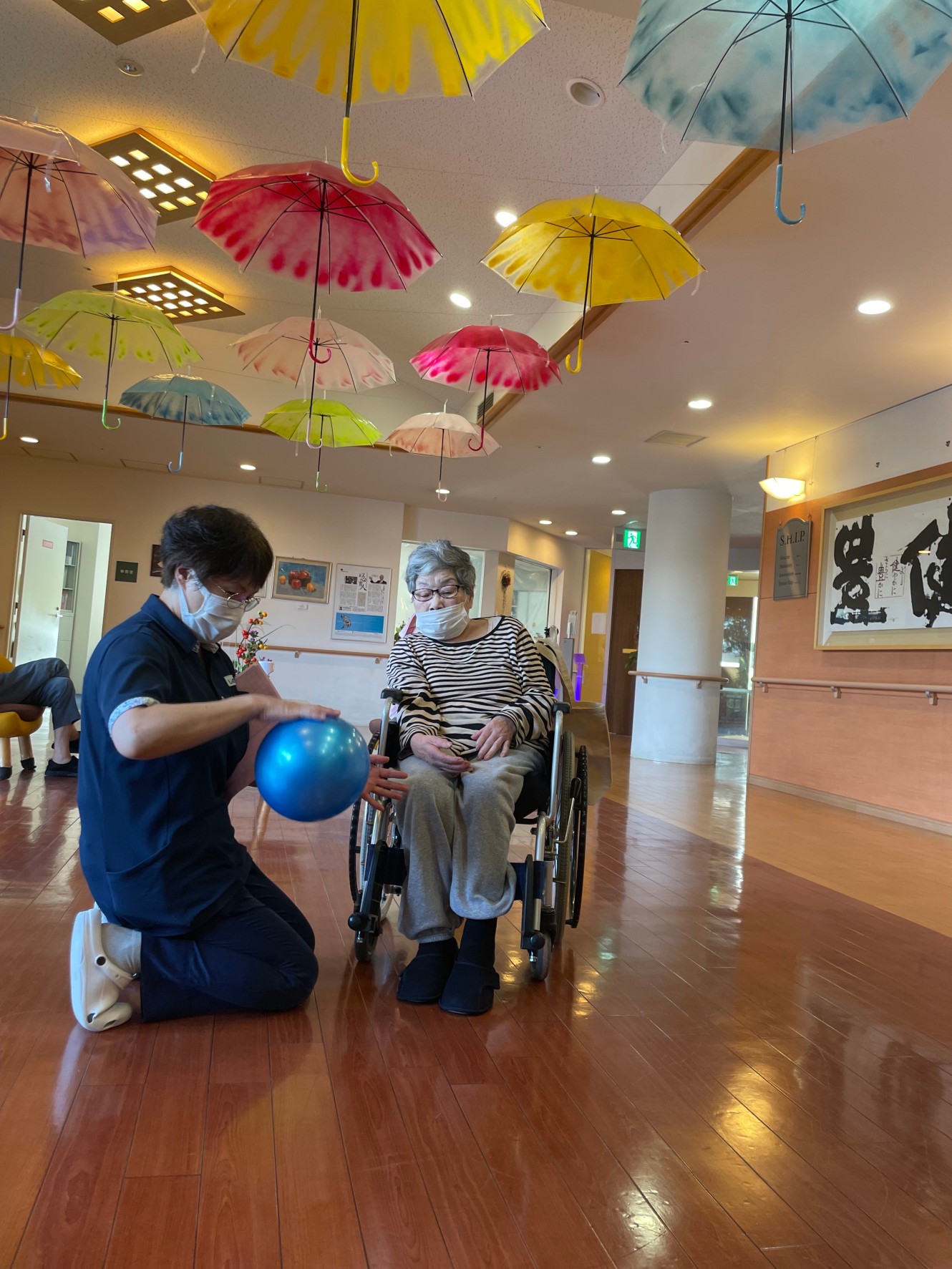 こんにちは、今日は一階でリハビリをしていると別のフロアのM様ご夫婦がこうしたらいいよと優しくお手伝いしてくださいました(o^^o)