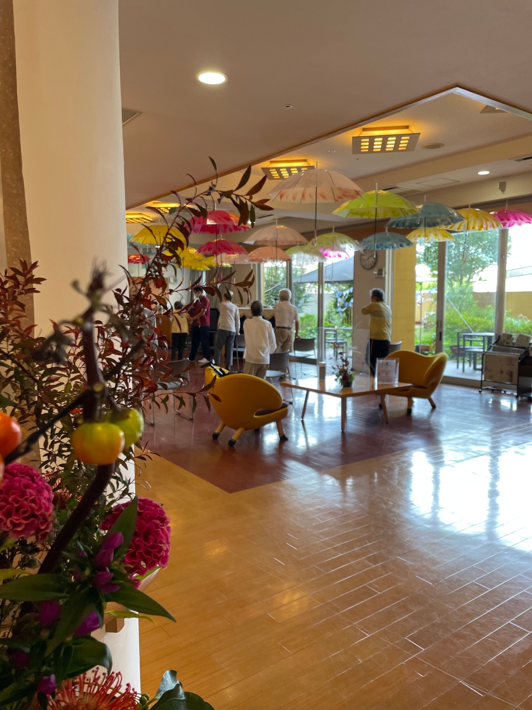 中庭にキレイなお花咲き始めました。